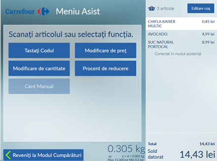 Pentru a aplica discounturi pentru mai multe produse, in acest pas se va scana cardul de supervizor, se va opta pentru ''Modul Asistenta'' dupa care, pentru ''Procent de reducere'', urmand pasii descrisi anterior.