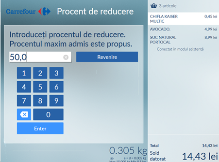 Se confirma procentul de reducere prin selectarea tastei »Enter« urmand sa se afiseze pe ecran reducerea aplicata, atat ca procent cat si ca valoare a pretului.